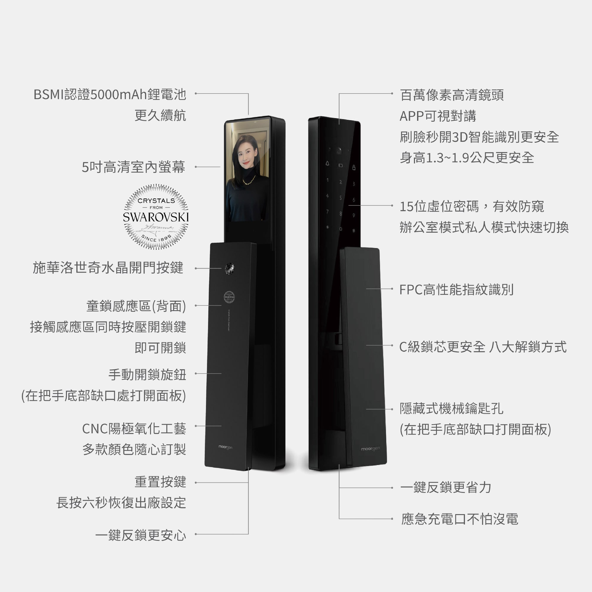 Moorgen T5+ 人臉辨識智慧電子鎖|Swarovski® 限定水晶版
